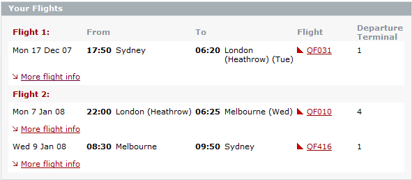7th : Depart London Heathrow at 10pm, QF010